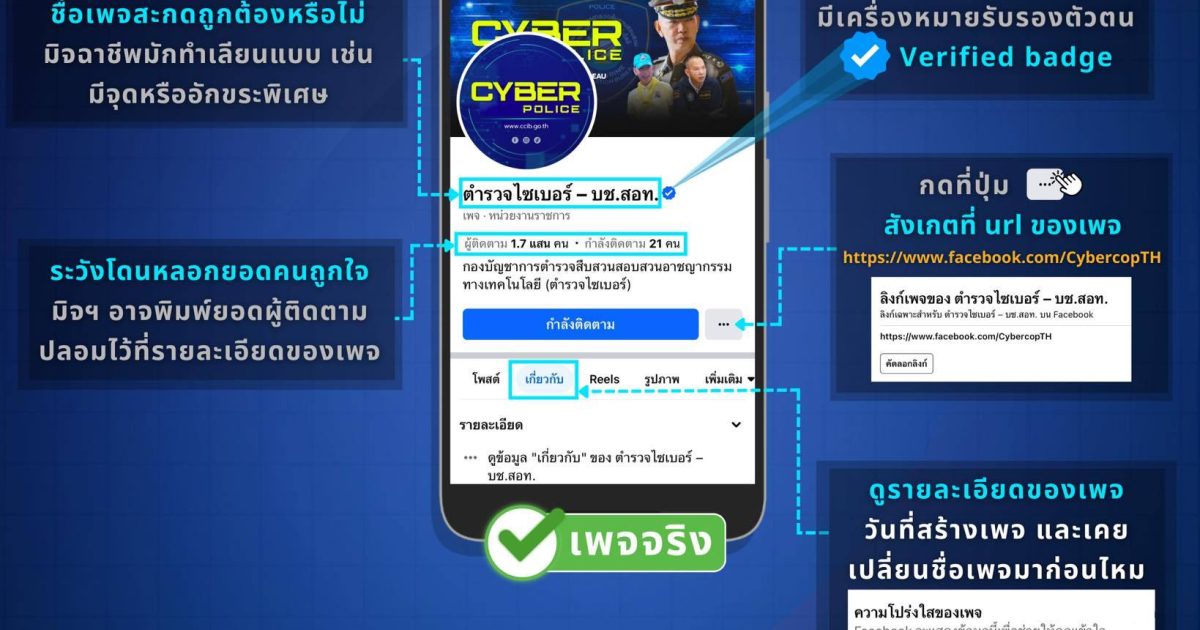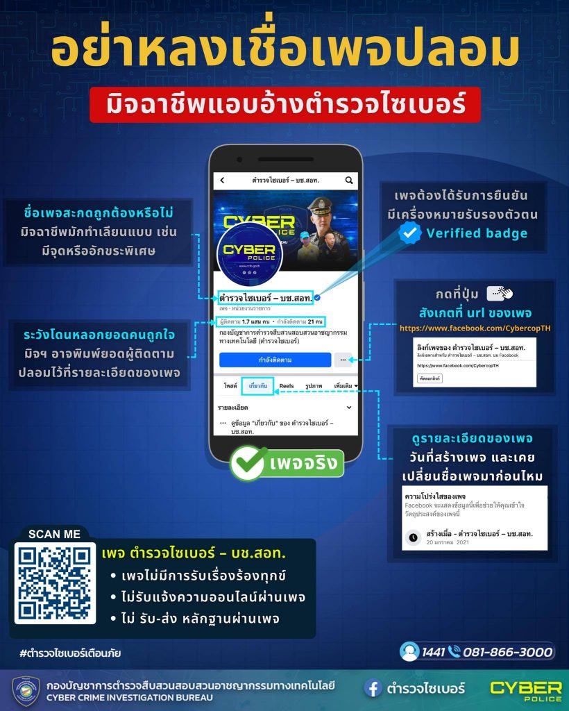 อย่าหลงเชื่อเพจปลอม มิจฉาชีพแอบอ้างตำรวจไซเบอร์