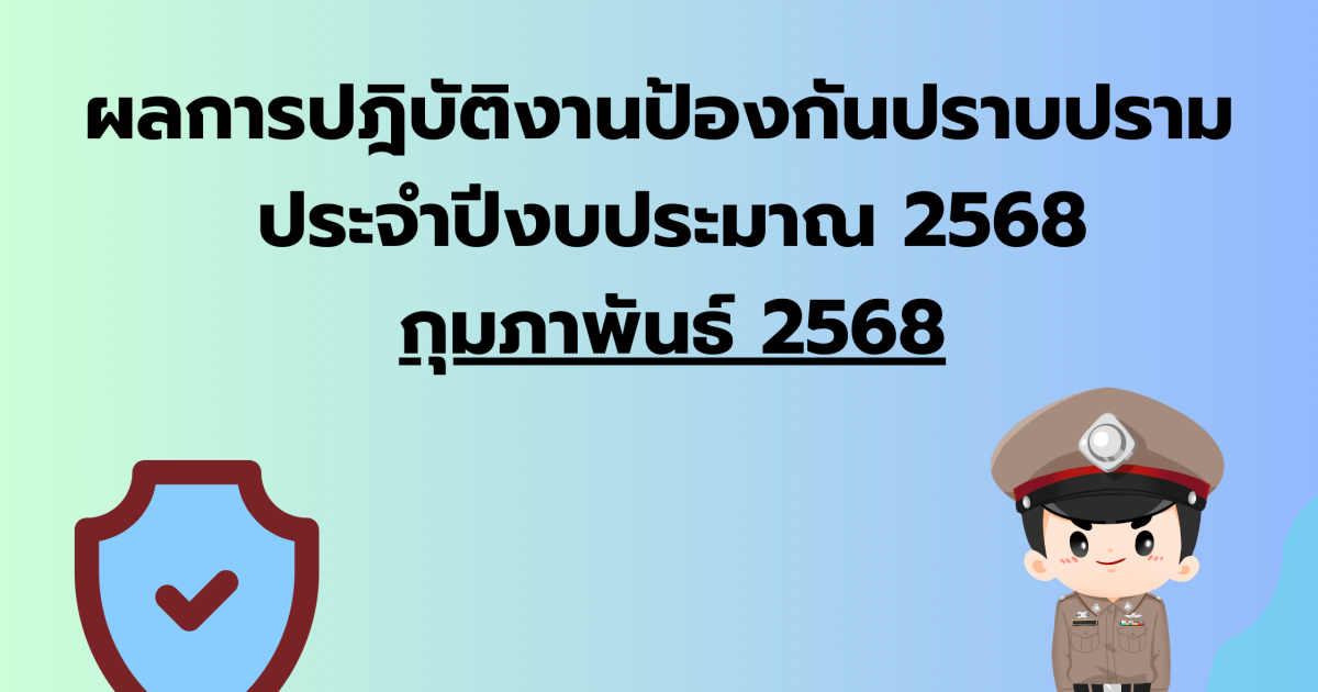 - วันที่ 1 ก.พ.2568- 28 ก.พ.2568 พ.ต.ท.สันต์นที กาญจนาภา สว.สภ.คลองไผ่ ได้มอบหมายให้ร้อยเวร 2-0 ปฏิบัติหน้าที่ หัวหน้าสายตรวจ ตั้งจุดตรวจยาเสพติด และจุดตรวจกวดขันวินัยจราจร รวมจำนวน ..15..ครั้ง